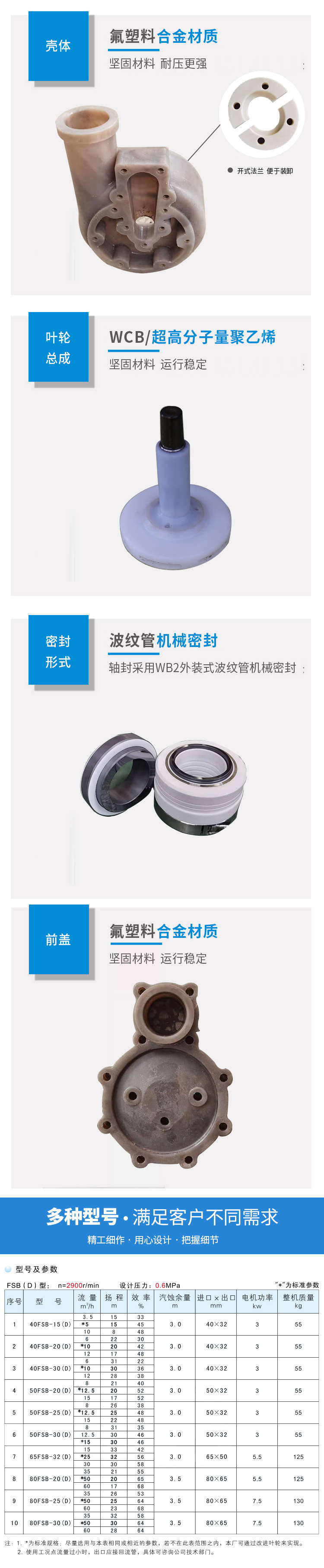 過流部件采用氟塑料、氟塑料合金制造,耐腐蝕性能優(yōu)異?;w采用金屬材料制造,耐壓能力強(qiáng)。