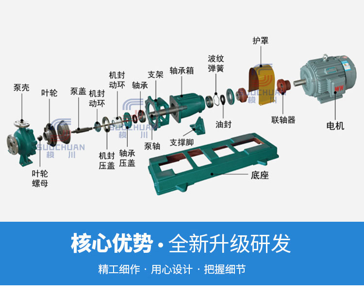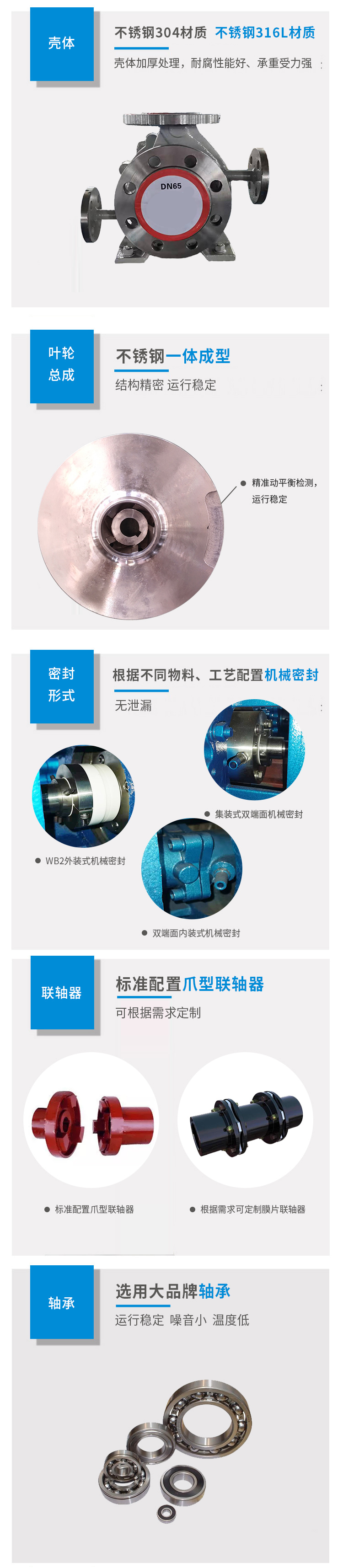 該系類泵根據(jù)不用的介質(zhì)工況采用多種密封方式:外裝式波紋管機械密封,單端面內(nèi)裝機械密封,雙端面內(nèi)裝機械密封,集裝式雙端面機械密封,內(nèi)裝高溫高壓波紋管機械密封。機械密封材質(zhì)根據(jù)介質(zhì)的不同選用不同的材質(zhì)。耐腐耐磨、密封性能好、安裝簡便、易維護(hù)。